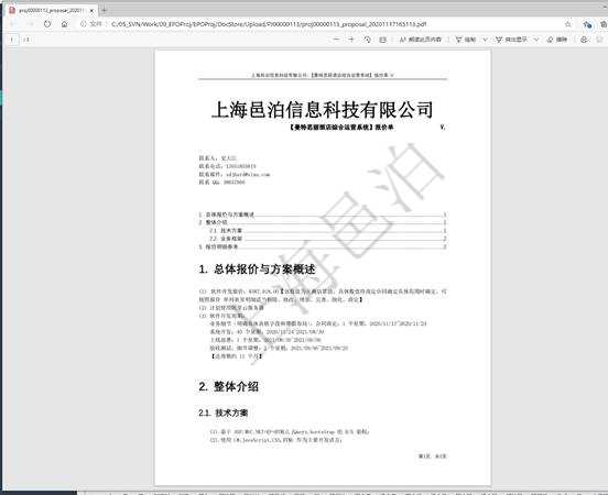 项目经理可通过邑泊家用制冷电器具制造项目管理软件导出项目提案,家用制冷电器具制造项目管理软件会在后台根据数据库里实际数据生成pdf文档并下载给用户打开。导出的家用制冷电器具制造项目提案内容包括:项目经理与联系信息、项目提案书目录、家用制冷电器具制造项目总体报价单与方案描述、家用制冷电器具制造项目整体技术方案介绍、家用制冷电器具制造项目报价明细表。
