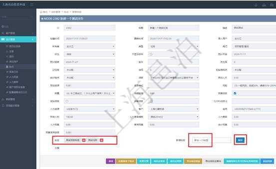 用户可以在非融资担保服务项目管理软件为每一个项目结点任务设置多个不同的分类标识标签,可进行分类、聚集和统计等大数据功能。